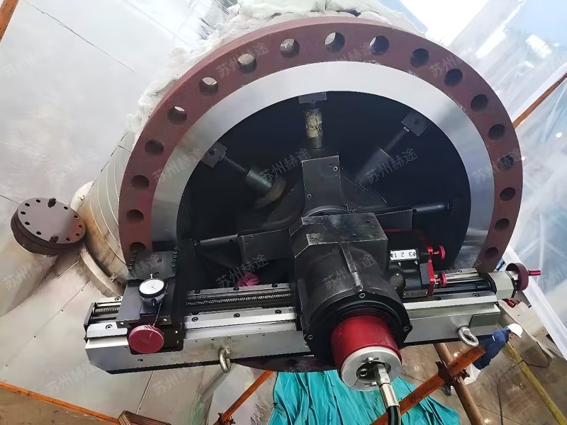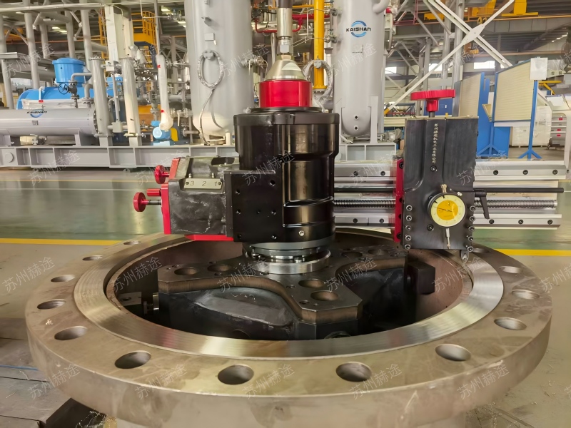 HT860MM作為內(nèi)漲式法蘭端面加工機(jī),可通過法蘭盤的內(nèi)孔面實(shí)現(xiàn)快速裝夾,修復(fù)法蘭面直徑覆蓋152-865mm范圍。高剛性部件搭配精確的公差配合,能保證在整個(gè)修復(fù)直徑區(qū)間都能達(dá)到極高的加工精度。整機(jī)質(zhì)量輕,且具備很好的拓展性,可加工各類法蘭密封面,操作簡(jiǎn)便,能快速完成修復(fù)作業(yè)。